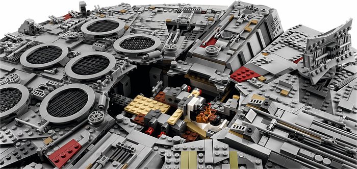 W zestawie znajdują się minifigurki zarówno klasycznej załogi, jak i postaci z nowszych części sagi. Wnętrze statku jest bogato wyposażone: znajdziemy tam holograficzne szachy Dejarik, stanowisko mechanika oraz miejsce do monitorowania hipernapędu. Dodatkowo, zestaw oferuje możliwości zmiany anten i załogi, co pozwala na tworzenie klasycznych i nowoczesnych wersji Sokoła Millennium.